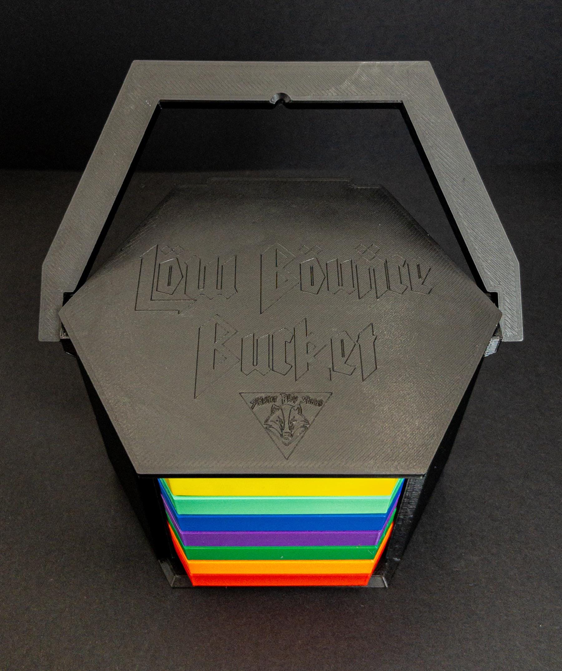 That’s why the RPG Bucket was created: a complete tabletop solution for smooth, controlled dice rolling. With 7 trays (enough for 6 players and 1 Game Master) and a massive 70 matching tokens (10 per tray), you’ll never run short on gear again. Low Bounce Bucket – Colors End Confusion.