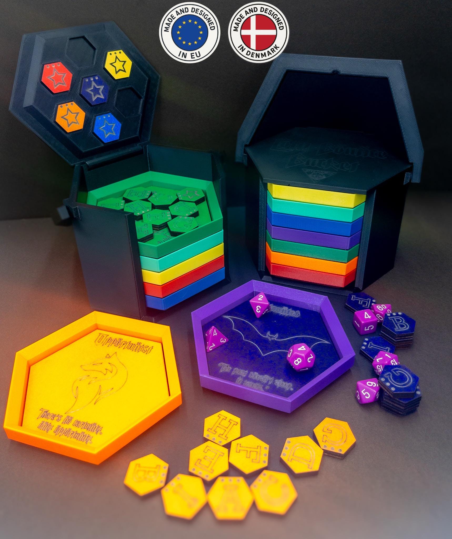 • 🎲 Low bounce trays – dice stay on the table and in the story, where they belong
