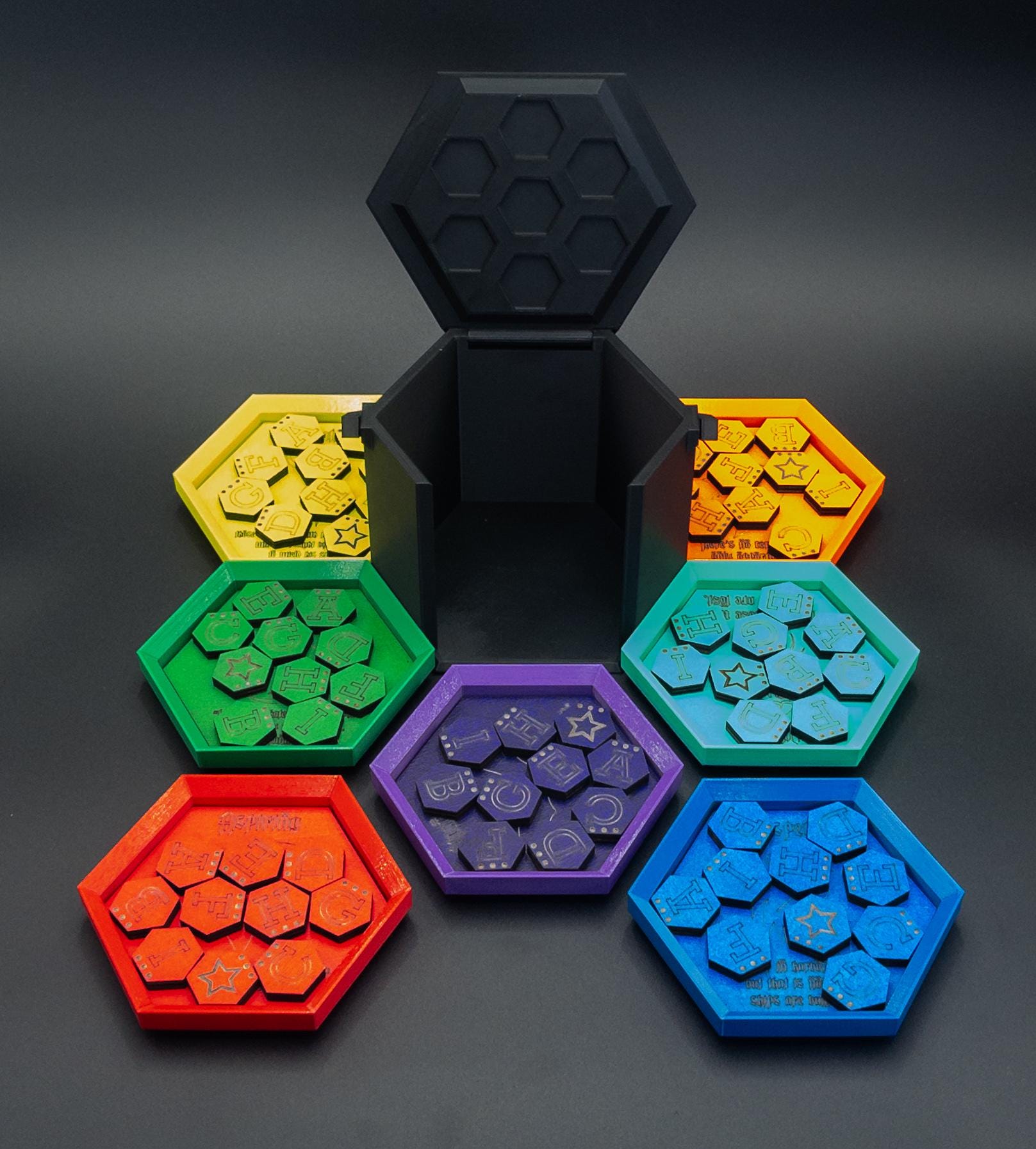 Each player has their own tray and matching tokens, so you’ll always know who owns what at the table. No more mix-ups, no more confusion – just clarity and flow. And the tokens aren’t just markers:
